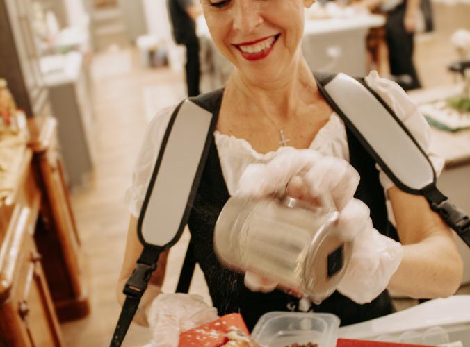 We don’t serve cannoli. We create an experience. Each one is hand-piped to order, finished on the spot, and built right in front of your guests. It draws a crowd—every time. Imported Sicilian shells. Traditional ricotta. No shortcuts. Gluten-free and non-GMO. Featuring our exclusive Saucy Queen Honey Spice Cannoli Dust—because details matter.