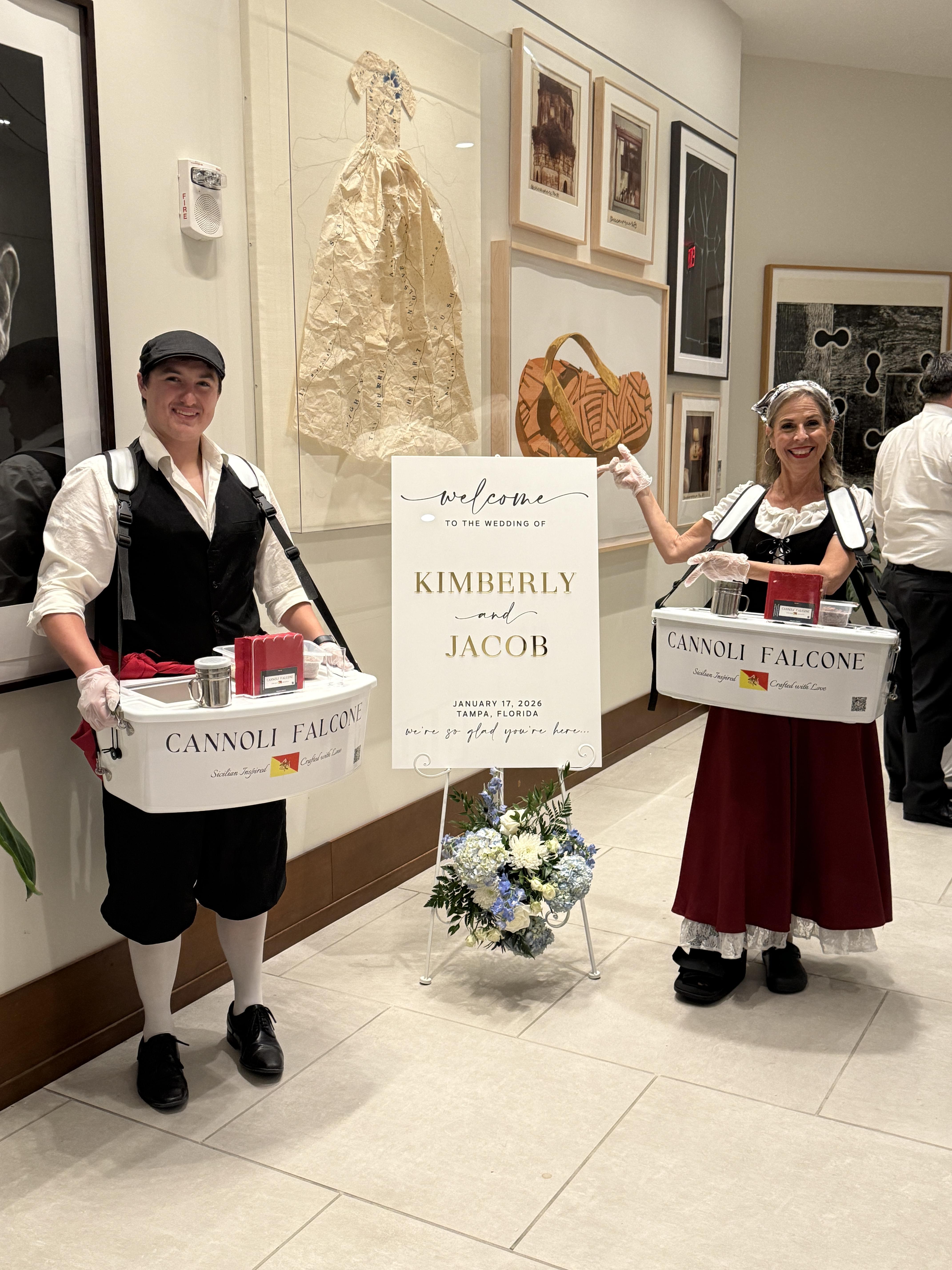 Perfect for champagne welcomes, private parties, galas, holiday celebrations, meeting receptions, ribbon cuttings, team appreciation events, and weddings. Cannoli Falcone transforms dessert into a seamless, elevated experience.