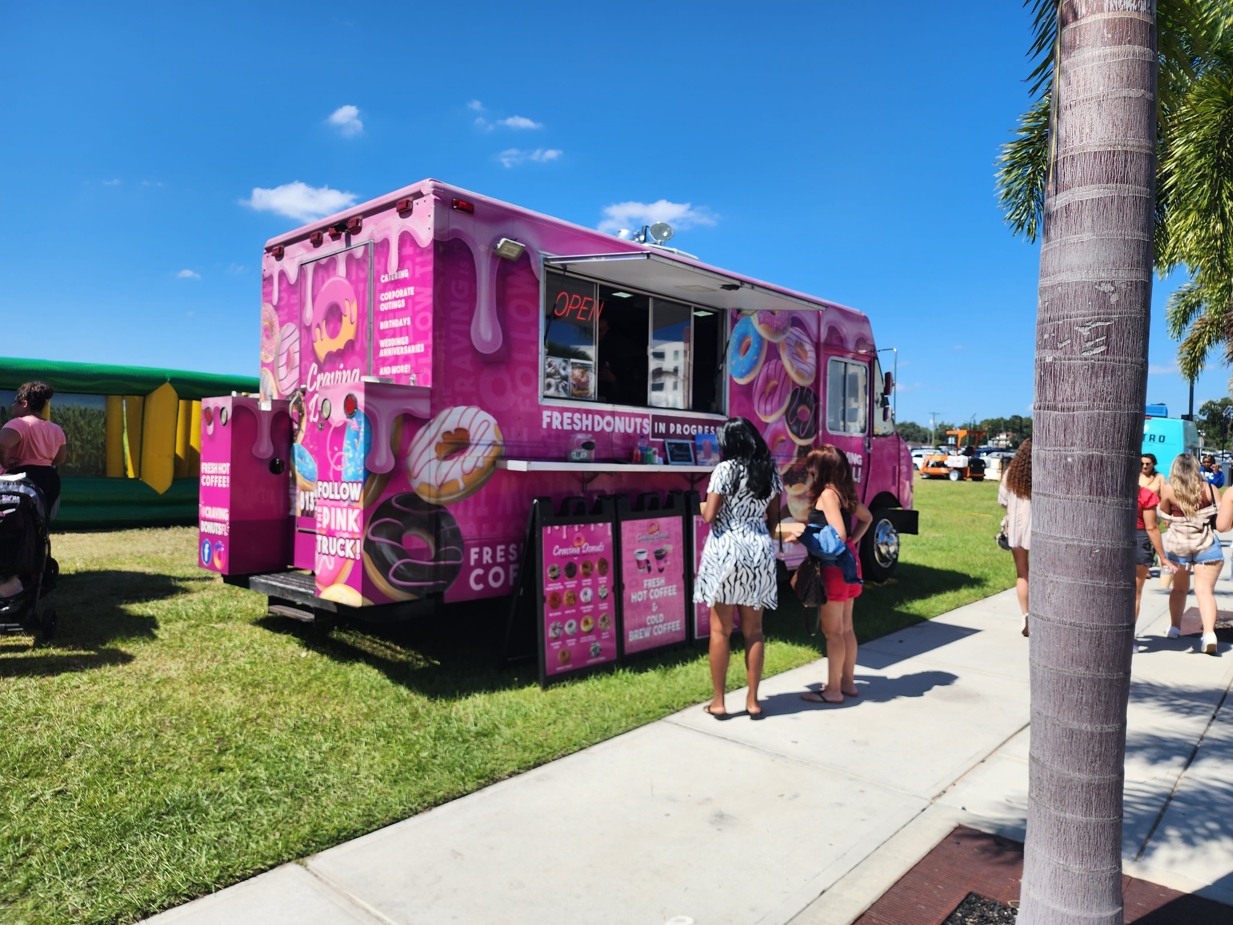 Craving Donuts is a mobile catering company serving up hot, made-to-order donuts for events across Tampa Bay and the surrounding areas. Whether it’s a corporate celebration, wedding, birthday party, school event or convention, we roll in with our bold pink truck and create a fresh donut experience your guests won’t forget. Every donut is fried on-site and served warm, topped with creative flavors like Big Guava, Caramel Bacon, and So Much S’Mores.