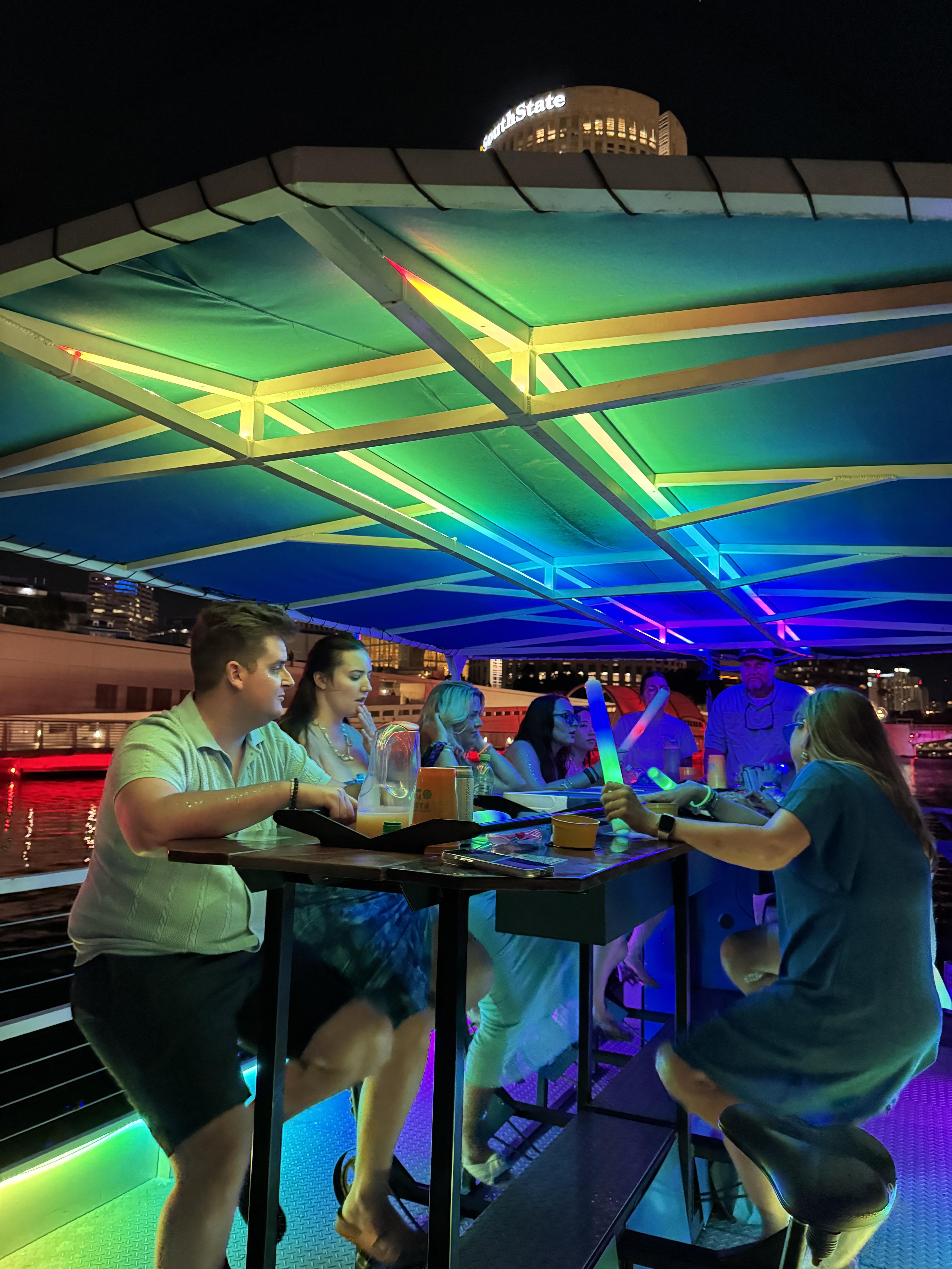 We have taken the pedal pub concept to the water with the only pedal-powered tour boat in all of Florida! Our 2 hour cruise is the perfect way to see Tampa’s beautiful downtown! Great for parties, weekend get-togethers with friends, and team building! Let's Pedal, Pedal, Drink!